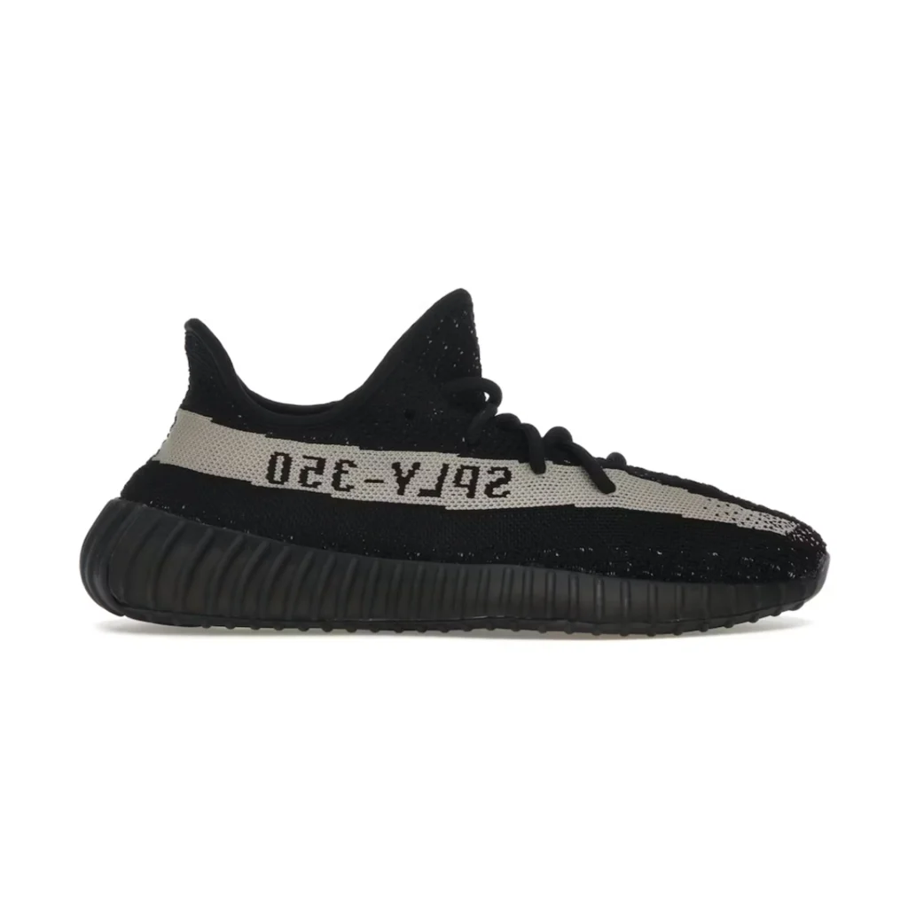 Negro con detalles en blanco, Primeknit elástico y suela Boost para comodidad continua. Un Yeezy contrastante, moderno y con fuerte vibra street.