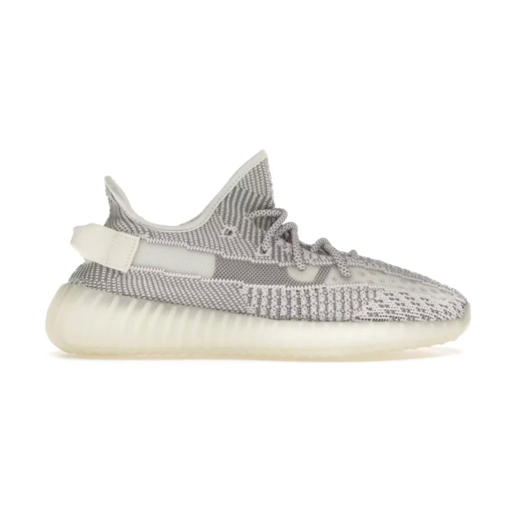 Gris claro con hilos reflectantes, Primeknit ligero y suela Boost para confort total. Un Yeezy moderno que resalta de noche con vibra street.