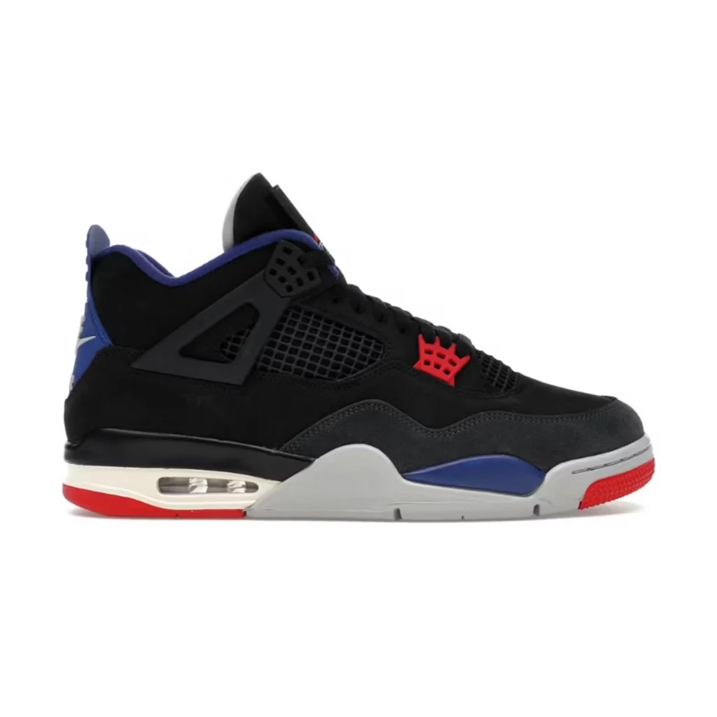 Mezcla de colores icónicos en negro, rojo y azul, piel premium y detalles clásicos del Jordan 4. Un par llamativo que une varias eras con vibra street.