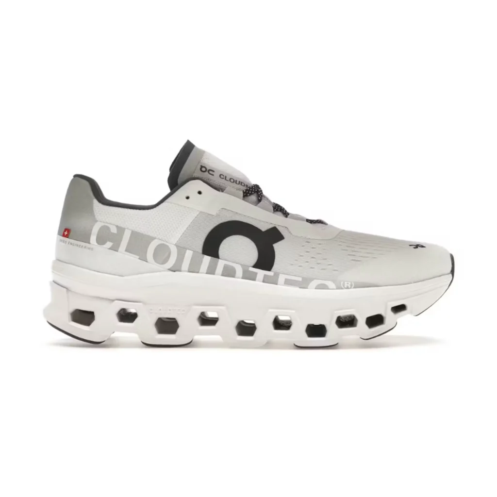 Blanco con detalles negros, upper en malla ligera y suela Cloudmonster para máxima amortiguación. Un sneaker moderno y cómodo con vibra street.
